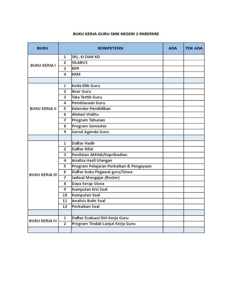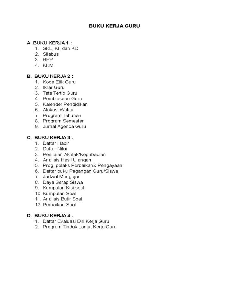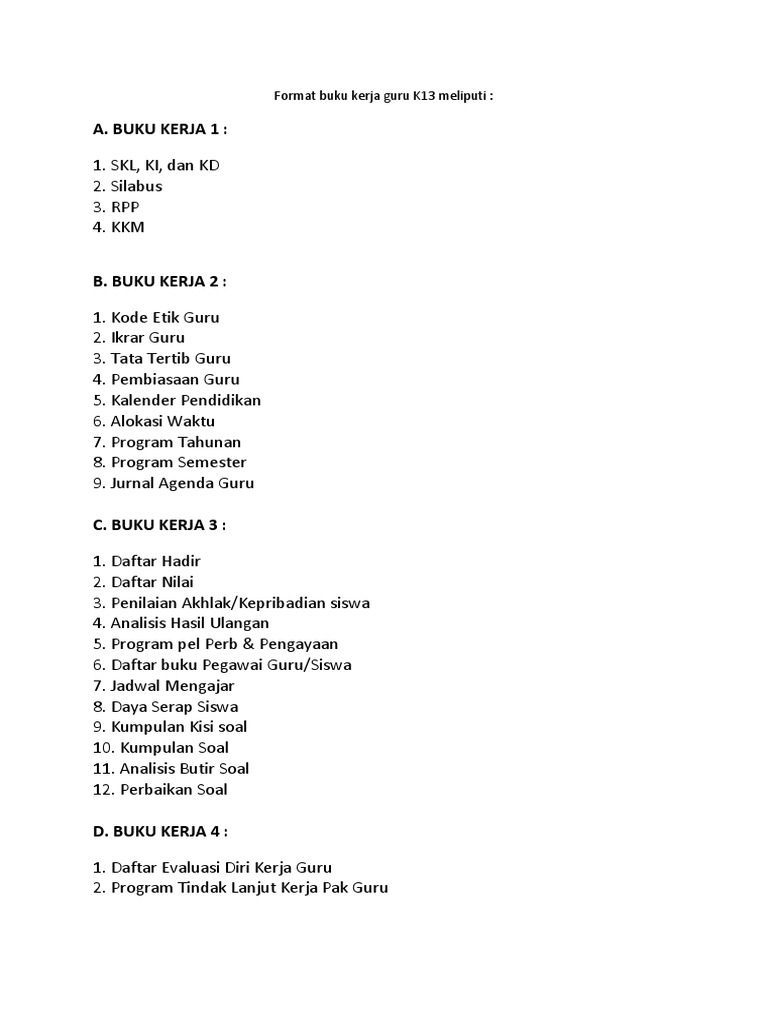 Doc Buku Kerja 3 Maria Mone Academia Edu from 0.academia-photos.com Ikuti blogpendidikan.net pada aplikasi google news : Dengan membuat buku kerja guru tersebut, maka guru akan memiliki pedoman dalam melaksanakan dan mengevaluasi pembelajaran berdasarkan rencana yang sudah disusun. View buku kerja guru 3.docx from aa 1buku kerja guru 3 nama : Daftar evaluasi diri kerja guru. Buku kerja guru perlu dimiliki oleh guru sebagai ujung tombak pelaksanaan kurikulum 2013. Logo kementeria pendidikan dan kebudayaan ri. Daftar evaluasi diri kerja guru ; Istilah buku kerja guru ini secara sederhana disebut juga perangkat administrasi pembelajaran.