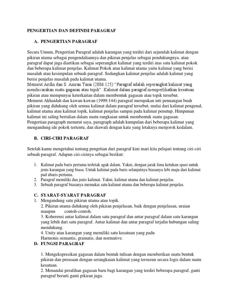 Paragraf tersusun dari beberapa kalimat yang memiliki kesatuan makna 2 paragraf. Paragraf mempunyai satu ide pokok.